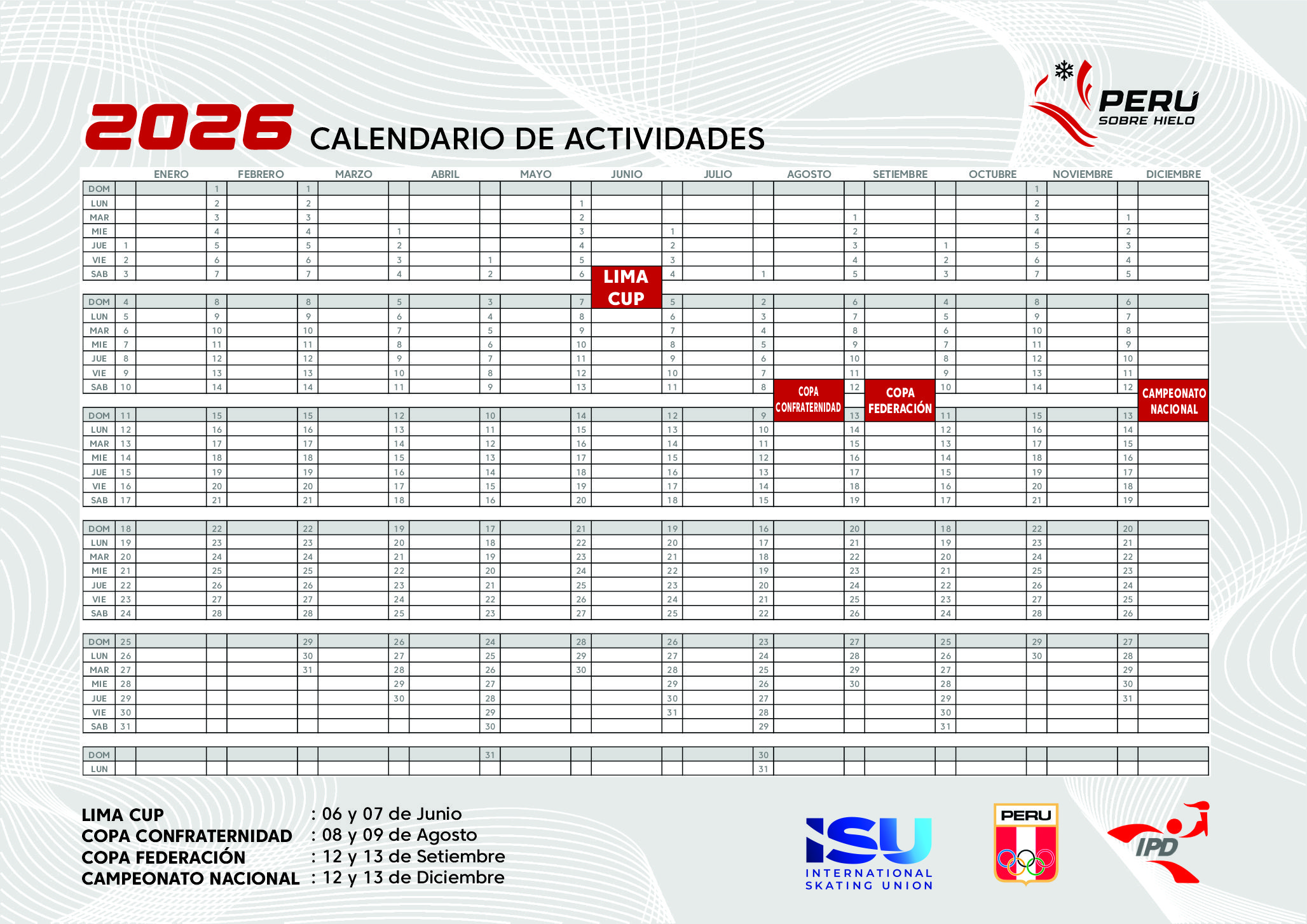 Calendario de Eventos 2026 🇵🇪⛸